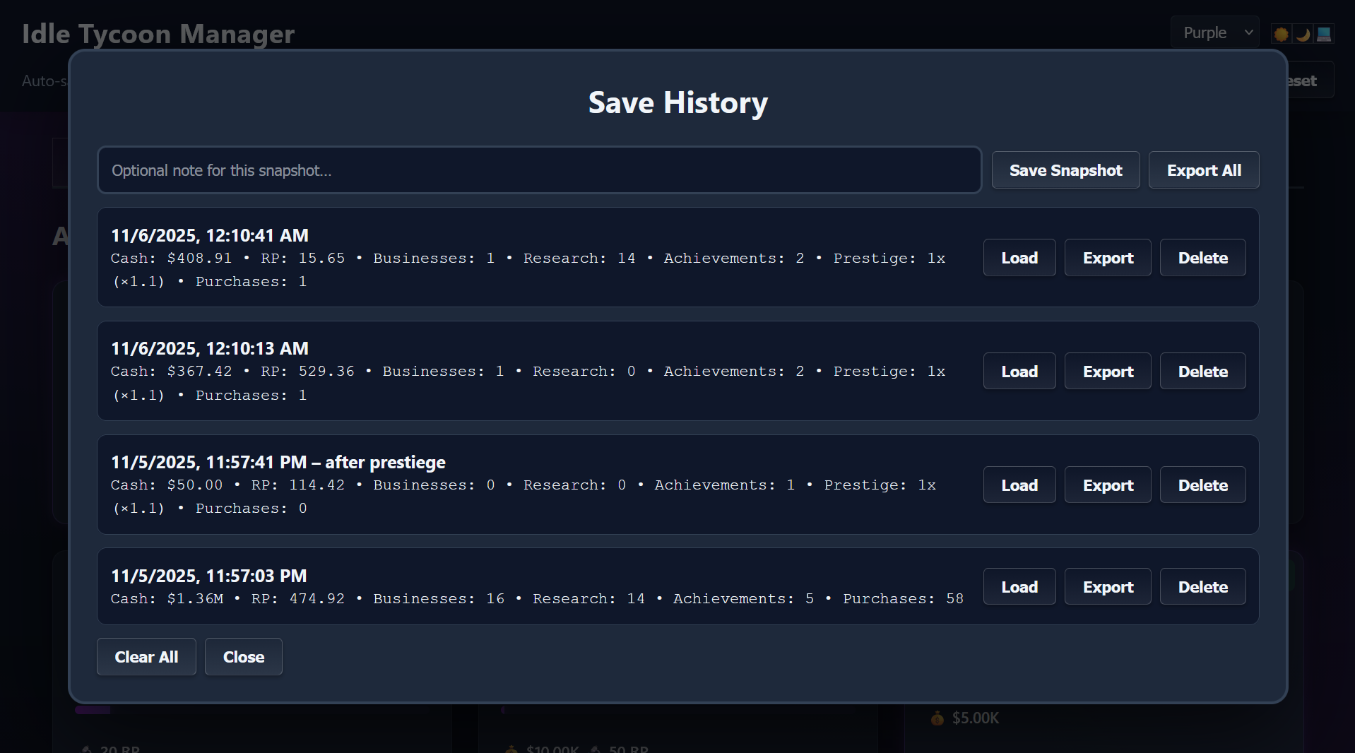 Idle Tycoon Manager is a **fully functional idle tycoon game template** built with **React + TypeScript**, designed to save you **months of foundational work**.