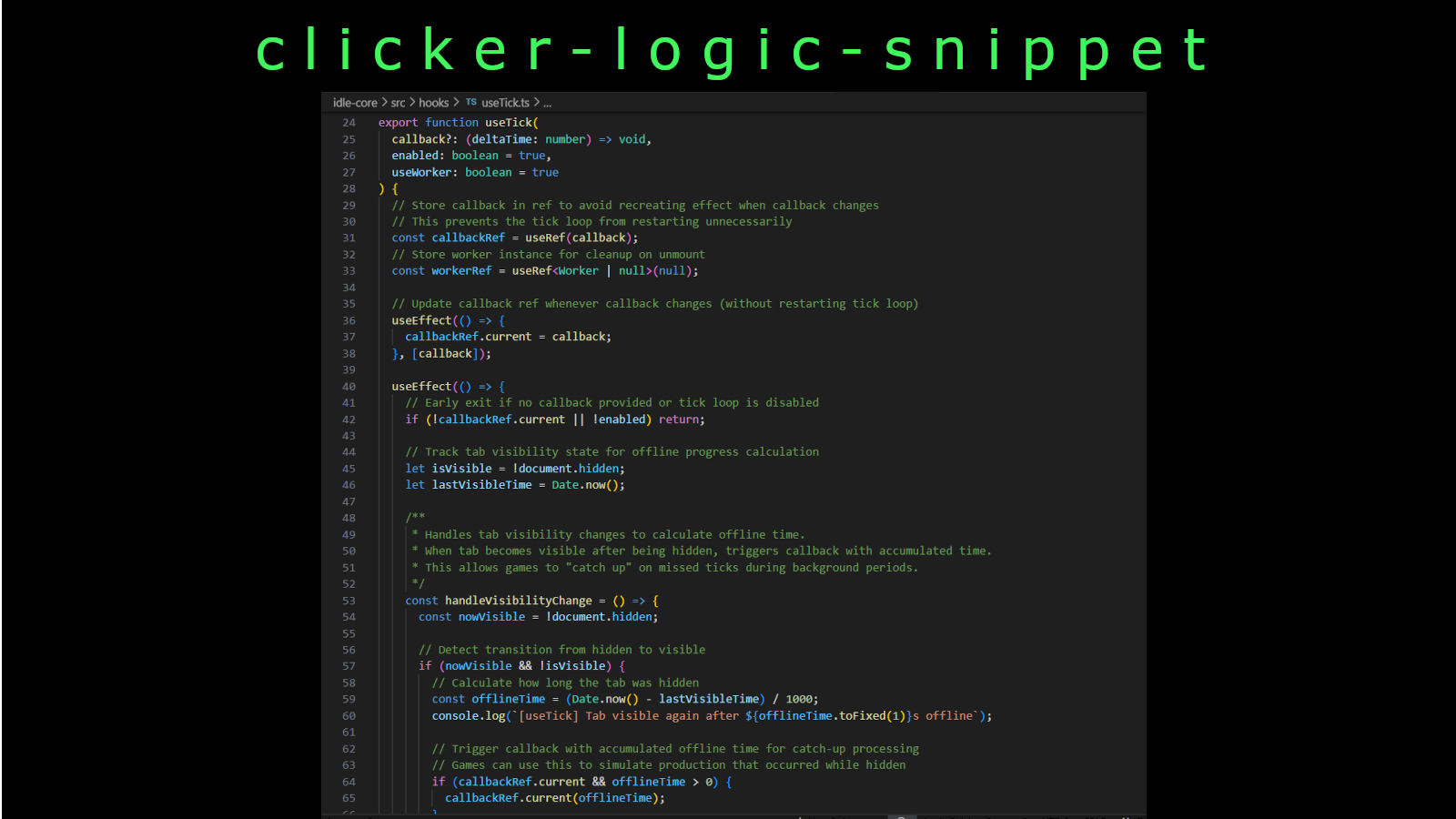 A complete React + TypeScript Idle Clicker Template — featuring auto-save, offline progress, and upgrade systems. Ready to extend, modify, and publish your own fully functional idle game.